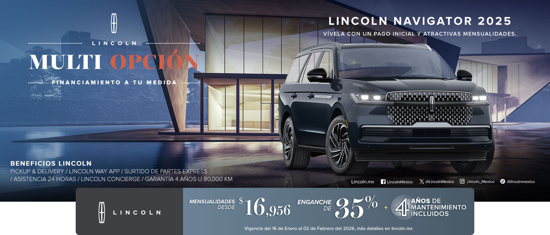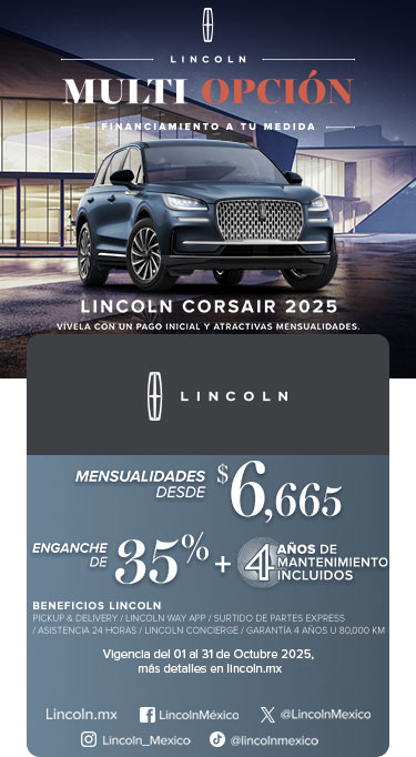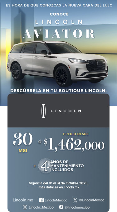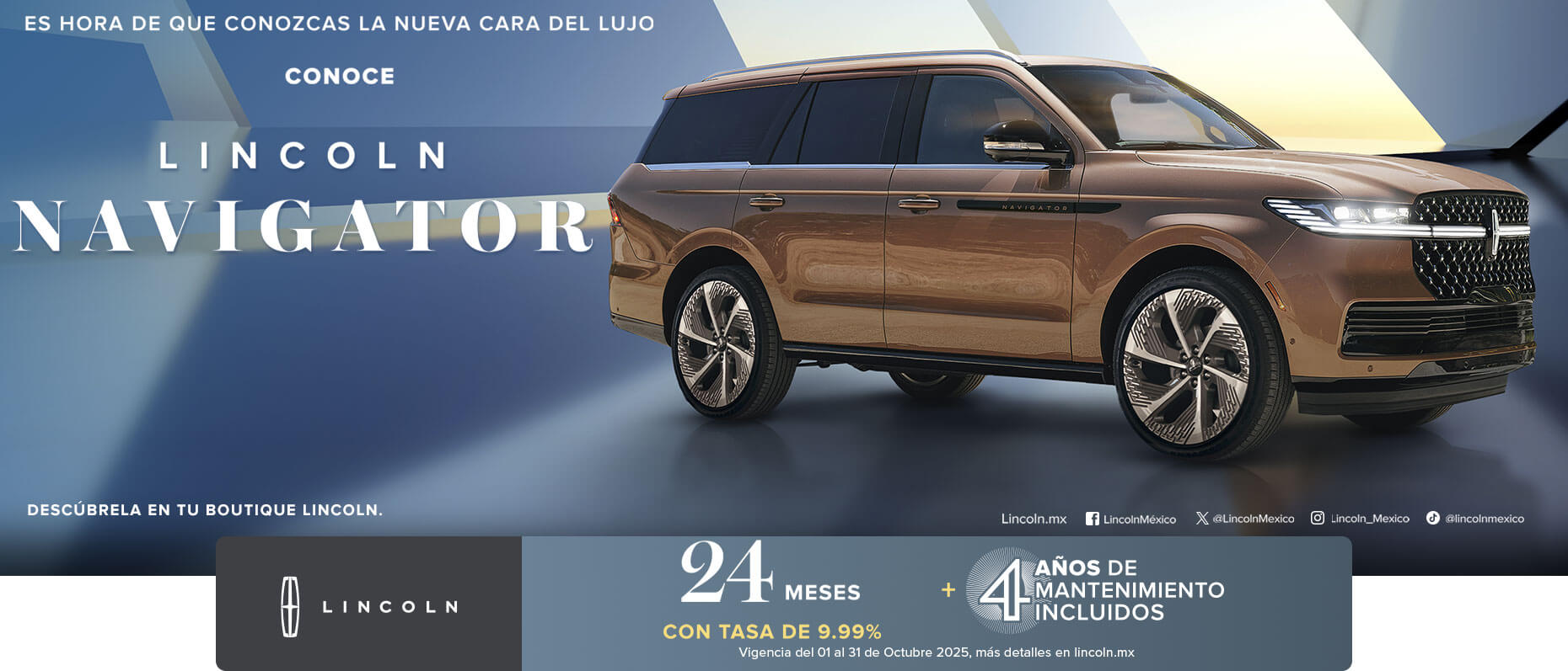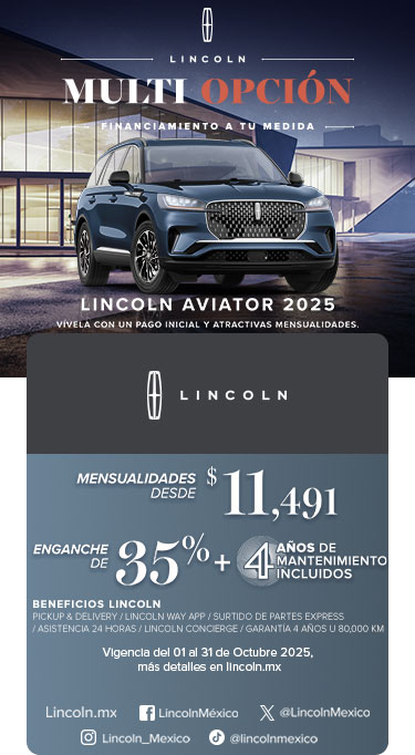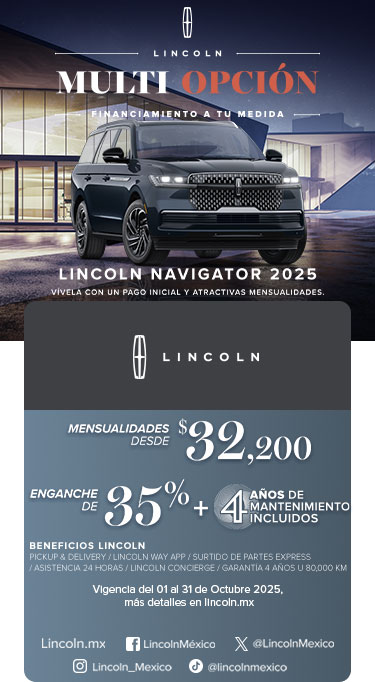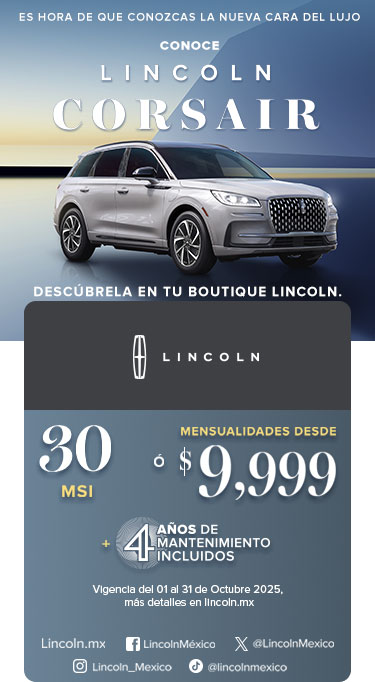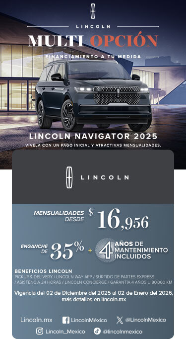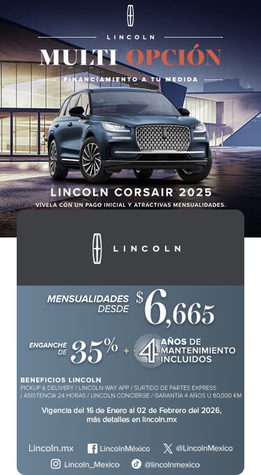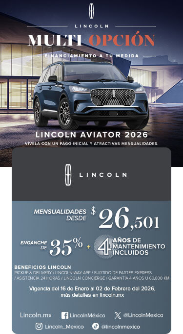 Lincoln Saltillo, con domicilio en, Calle Blvd. Venustiano Carranza 4600, Colonia Virreyes Residencial, C.P. 25230, Saltillo, es responsable del tratamiento de sus datos personales. La información de nuestros clientes y clientes potenciales es tratada de forma estrictamente confidencial y es tan importante como su seguridad al conducir nuestros vehículos, por lo que hacemos un esfuerzo permanente para salvaguardarla.