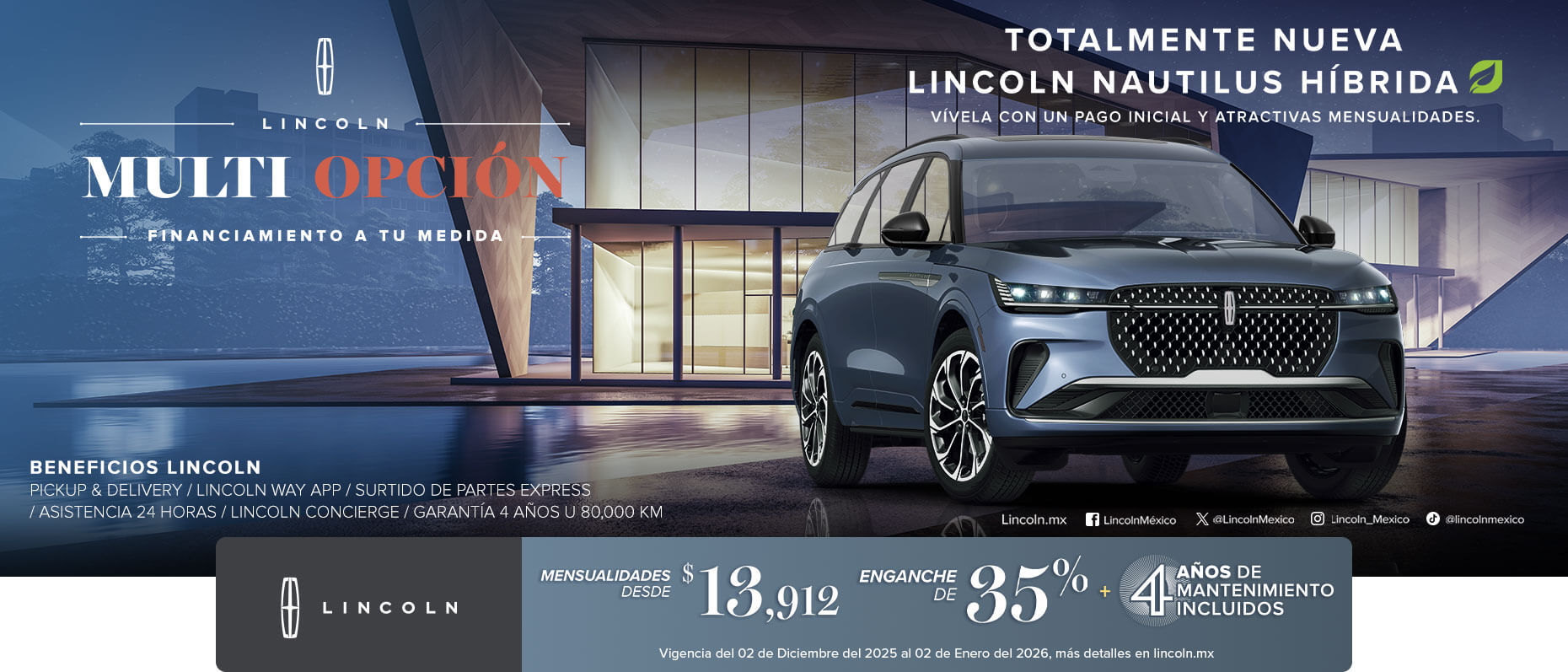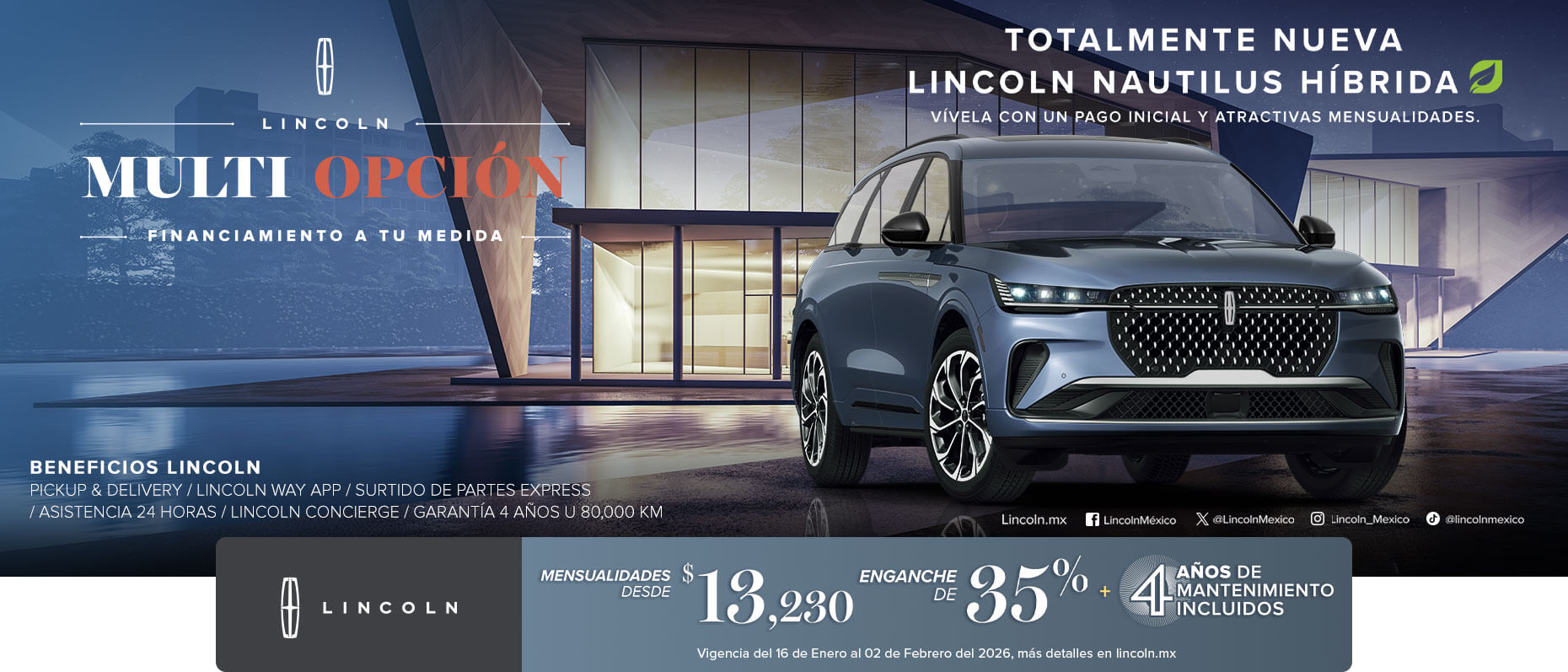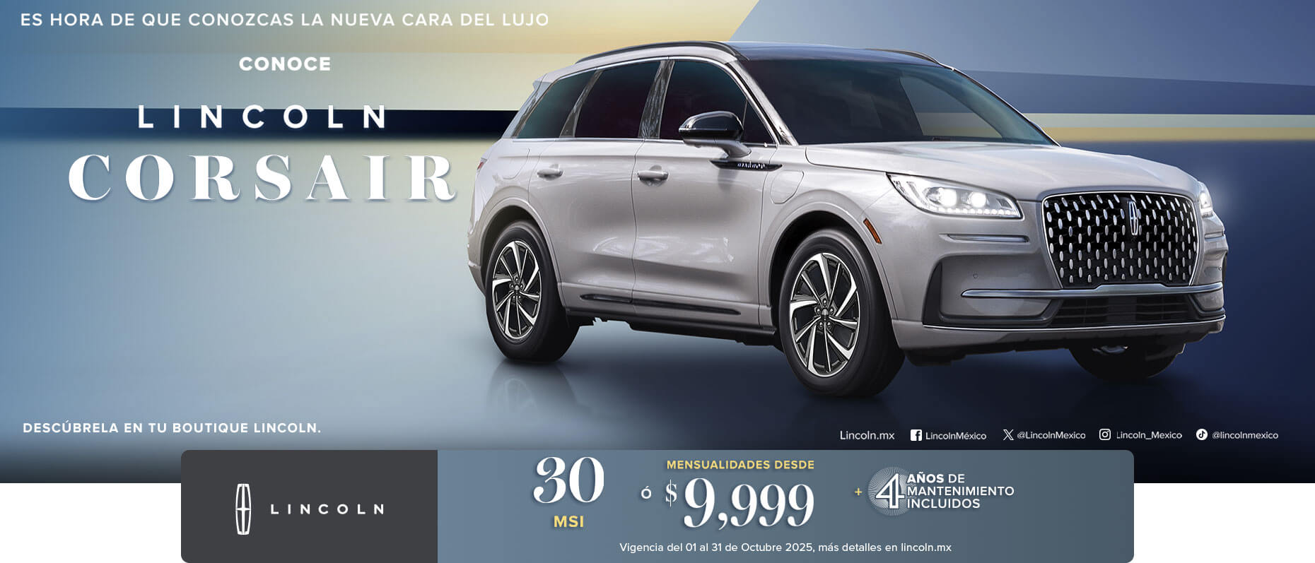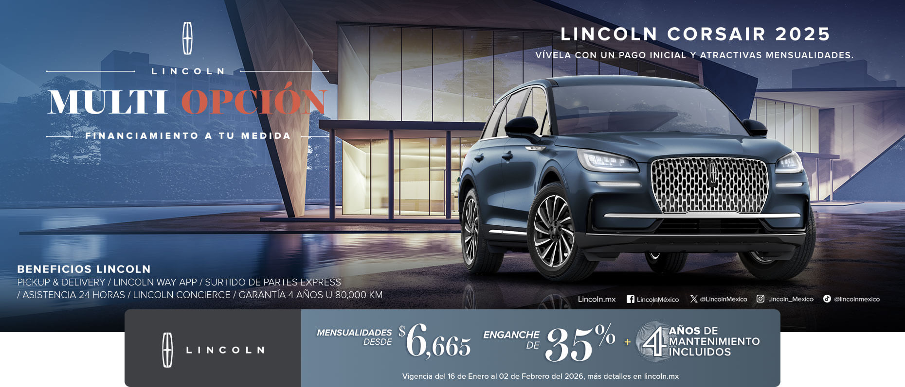 Lincoln Saltillo, con domicilio en, Calle Blvd. Venustiano Carranza 4600, Colonia Virreyes Residencial, C.P. 25230, Saltillo, es responsable del tratamiento de sus datos personales. La información de nuestros clientes y clientes potenciales es tratada de forma estrictamente confidencial y es tan importante como su seguridad al conducir nuestros vehículos, por lo que hacemos un esfuerzo permanente para salvaguardarla.